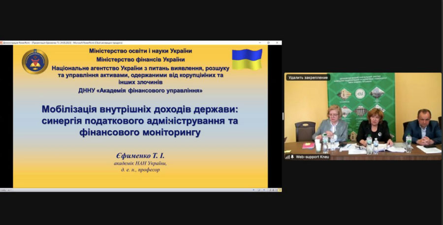 У рамках заходу Президент ДННУ «Академія фінансового управління», академік Національної академії наук України, доктор економічних наук, професор Єфименко Тетяна Іванівна виступила із доповіддю на тему: «Мобілізація внутрішніх доходів держави: синергія податкового адміністрування та фінансового моніторингу».
